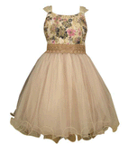 Beautiful shimmering floral bodice adorned with a lace waist band and layered tulle skirt and wire hem. Perfect for any special occasion.