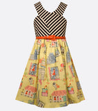 If she loves adventure, this dress is perfect for her. Cool asymetrical knit striped bodice to Parisian inspired printed poplin skirt and matching belt.