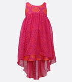 Your girl will be simply adorable in this fabulous Bonnie Jean summer dress. Hi-lo chiffon dress with fun print and laser cut design overlay.