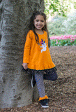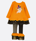 She will be simply adorable in this "boo"-tiful legging set! Cute layered skirt, fun patterns and a cute applique are just the right touches for this fun outfit.