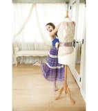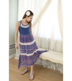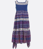 This dress is for girls who love to twirl! She'll look lovely in this printed chiffon maxi with crochet lace inserts and hanky hem.