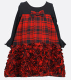This bell sleeved knit to woven plaid dress looks equally great with leggings and boots or tights and mary janes!