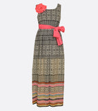 Run and play freely with this gorgeous printed chiffon jumpsuit! Featuring short style romper lining, oversized flower trim and matching tie belt!