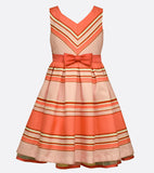 This beautiful multi stripe shantung party dress with, pleated skirt, peek a boo hem, satin sash and bow at waist is perfect for Easter, or any special spring event!