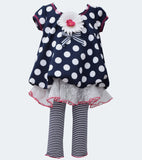 She'll love this nautical inspired bubble top with coordinating leggings and adorable lace ruffle and daisy trims.
