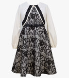 This beautiful black and white, bonded lace, fit & flare dress with coordinating lace trimmed sweater is the perfect addition to your daughters wardrobe. Pair it with tights, mary janes and a simple black satin bow.
