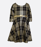 Plaid is one print that will never go out of style, and in this dress we've perfectly blended this classic print with shimmering gold for a totally posh look!