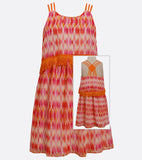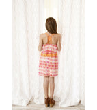 This dress is perfect for the free spirited girl! She'll love this funky printed chiffon, pop over dress with trendy fringe trim and it's unique back.